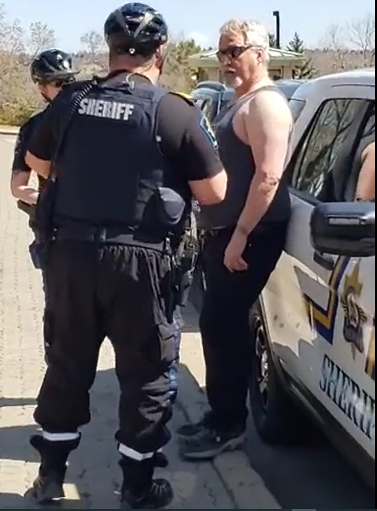 The Sheriffs forcibly grabbed Mr. Lefebvre by the arms and took him some distance to a parked Sheriff vehicle. Mr. Lefebvre was detained by the Sheriffs for approximately 30 minutes while they questioned him, ultimately writing him a ticket for $1,200. Several people stood nearby questioning the Sheriffs’ actions, and video recorded the encounter.
