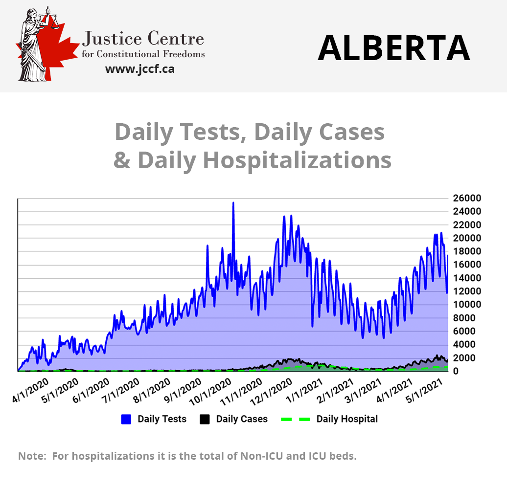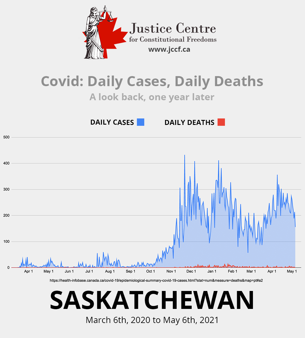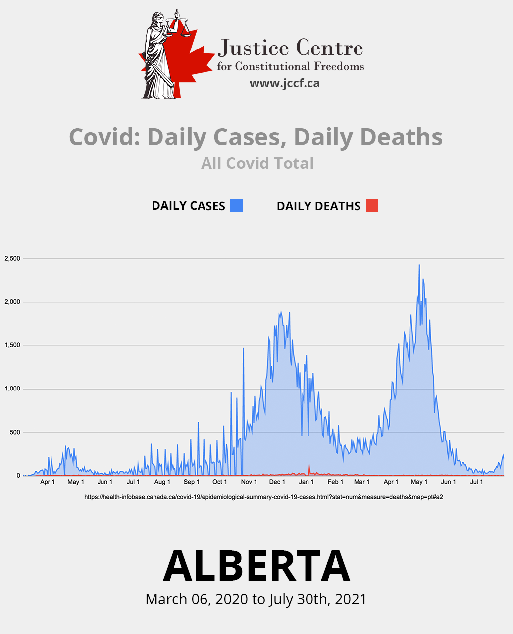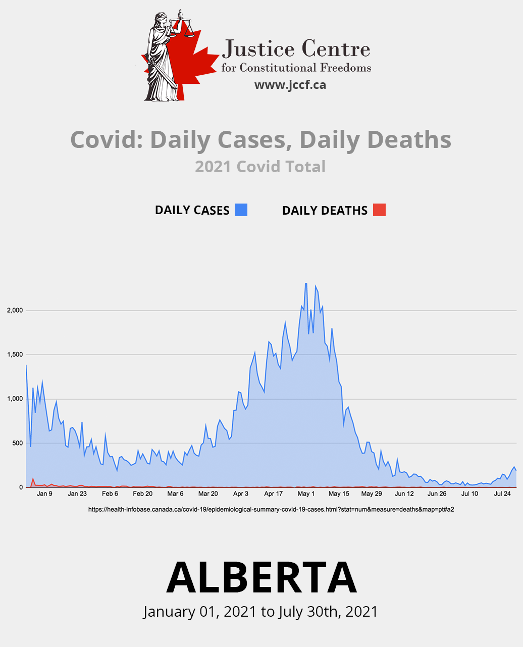 Covid Graphs by Province Full Overview, All Time Covid, 2021 Snapshot Covid: the First Year Tests, Cases & Hospitalizations News Releases - COVID-19 Apr 14th, 2020 - Saskatchewan Health Authority challenged for violating Charter freedoms April 6, 2020 - Alberta government gives itself sweeping new powers to create new laws without Legislative approval. April 4, 2020 - Justice Centre Statement on COVID-19 Related News & Articles April 14, 2020 - Ted Cruz: Social-distancing restrictions are fine — petty authoritarianism is not - New York Post APRIL 14, 2020 - Mass gathering: Cancellation of Saskatchewan drive-in church service questioned - The Canadian Press April 13, 2020 - The Coronavirus Is Exposing Little Tyrants All Over The Country - The Federalist April 7, 2020 - WHO calls for “dignified” seizure of sick family members Rebel News April 7, 2020 - Tucker Carlson: There has to be a more balanced course on coronavirus than the one we're on now - Fox News Columns & Reports - COVID-19 April 14, 2020 - Alberta's Bill 10 is an affront to the rule of law By John Carpay, The National Post April 10, 2020 - The cost of the coronavirus cure could be deadlier than the disease - By John Carpay, The Post Millenial April 7, 2020 - Analysis of Part 3 of Alberta’s Public Health Act: (Communicable Diseases and Public Health Emergencies) - By John Carpay April 5, 2020 - Canadian coronavirus prediction models must be transparent - By John Carpay, The Post Millenial Mar 31st, 2020 - Careful, crises are an ideal time for the state to grab powers: we’re already seeing it in Canada - By Justice Centre board member Bruce Pardy, The Financial Post March 20, 2020 - Justice dismantled as restrictions placed on court systems - By staff lawyer Lisa Bildy, The Post Millenial Columns & Reports - COVID-19 April 14, 2020 - Alberta's Bill 10 is an affront to the rule of law By John Carpay, The National Post April 10, 2020 - The cost of the coronavirus cure could be deadlier than the disease - By John Carpay, The Post Millenial April 7, 2020 - Analysis of Part 3 of Alberta’s Public Health Act: (Communicable Diseases and Public Health Emergencies) - By John Carpay April 5, 2020 - Canadian coronavirus prediction models must be transparent - By John Carpay, The Post Millenial Mar 31st, 2020 - Careful, crises are an ideal time for the state to grab powers: we’re already seeing it in Canada - By Justice Centre board member Bruce Pardy, The Financial Post March 20, 2020 - Justice dismantled as restrictions placed on court systems - By staff lawyer Lisa Bildy, The Post Millenial Related News & Articles April 14, 2020 - Ted Cruz: Social-distancing restrictions are fine — petty authoritarianism is not - New York Post APRIL 14, 2020 - Mass gathering: Cancellation of Saskatchewan drive-in church service questioned - The Canadian Press April 13, 2020 - The Coronavirus Is Exposing Little Tyrants All Over The Country - The Federalist April 7, 2020 - WHO calls for “dignified” seizure of sick family members Rebel News April 7, 2020 - Tucker Carlson: There has to be a more balanced course on coronavirus than the one we're on now - Fox News