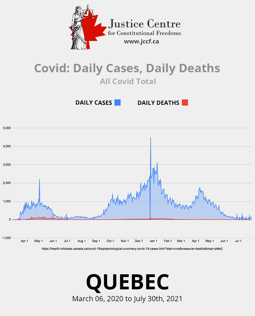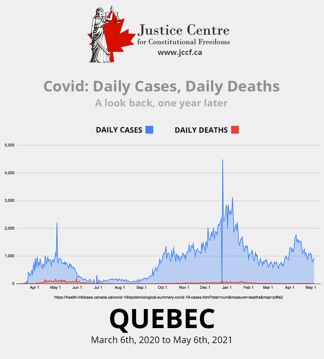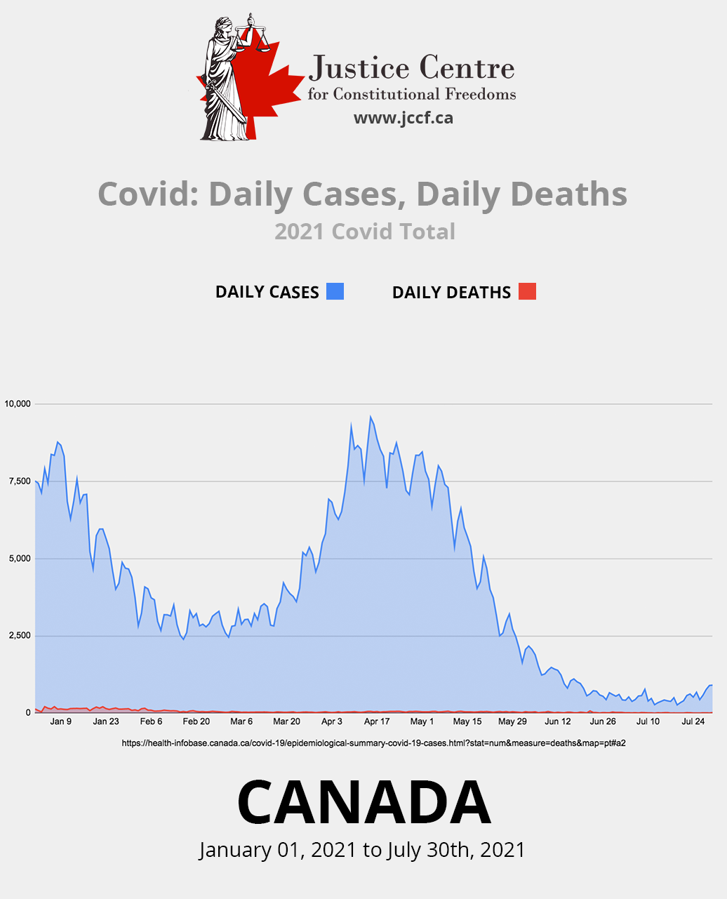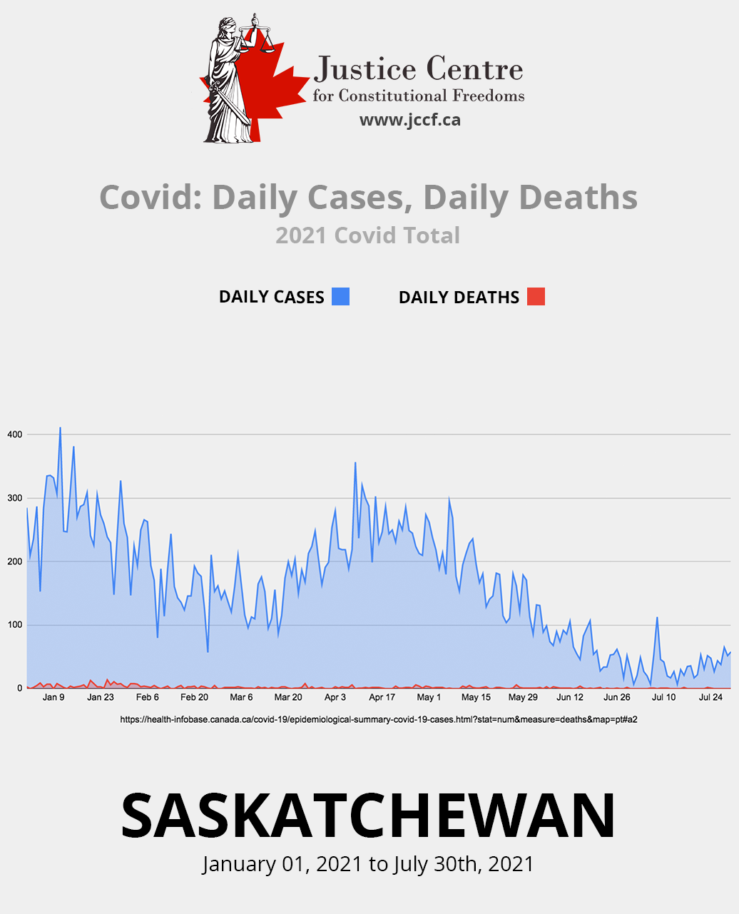 Covid Graphs by Province Full Overview, All Time Covid, 2021 Snapshot Covid: the First Year Tests, Cases & Hospitalizations News Releases - COVID-19 Apr 14th, 2020 - Saskatchewan Health Authority challenged for violating Charter freedoms April 6, 2020 - Alberta government gives itself sweeping new powers to create new laws without Legislative approval. April 4, 2020 - Justice Centre Statement on COVID-19 Related News & Articles April 14, 2020 - Ted Cruz: Social-distancing restrictions are fine — petty authoritarianism is not - New York Post APRIL 14, 2020 - Mass gathering: Cancellation of Saskatchewan drive-in church service questioned - The Canadian Press April 13, 2020 - The Coronavirus Is Exposing Little Tyrants All Over The Country - The Federalist April 7, 2020 - WHO calls for “dignified” seizure of sick family members Rebel News April 7, 2020 - Tucker Carlson: There has to be a more balanced course on coronavirus than the one we're on now - Fox News Columns & Reports - COVID-19 April 14, 2020 - Alberta's Bill 10 is an affront to the rule of law By John Carpay, The National Post April 10, 2020 - The cost of the coronavirus cure could be deadlier than the disease - By John Carpay, The Post Millenial April 7, 2020 - Analysis of Part 3 of Alberta’s Public Health Act: (Communicable Diseases and Public Health Emergencies) - By John Carpay April 5, 2020 - Canadian coronavirus prediction models must be transparent - By John Carpay, The Post Millenial Mar 31st, 2020 - Careful, crises are an ideal time for the state to grab powers: we’re already seeing it in Canada - By Justice Centre board member Bruce Pardy, The Financial Post March 20, 2020 - Justice dismantled as restrictions placed on court systems - By staff lawyer Lisa Bildy, The Post Millenial Columns & Reports - COVID-19 April 14, 2020 - Alberta's Bill 10 is an affront to the rule of law By John Carpay, The National Post April 10, 2020 - The cost of the coronavirus cure could be deadlier than the disease - By John Carpay, The Post Millenial April 7, 2020 - Analysis of Part 3 of Alberta’s Public Health Act: (Communicable Diseases and Public Health Emergencies) - By John Carpay April 5, 2020 - Canadian coronavirus prediction models must be transparent - By John Carpay, The Post Millenial Mar 31st, 2020 - Careful, crises are an ideal time for the state to grab powers: we’re already seeing it in Canada - By Justice Centre board member Bruce Pardy, The Financial Post March 20, 2020 - Justice dismantled as restrictions placed on court systems - By staff lawyer Lisa Bildy, The Post Millenial Related News & Articles April 14, 2020 - Ted Cruz: Social-distancing restrictions are fine — petty authoritarianism is not - New York Post APRIL 14, 2020 - Mass gathering: Cancellation of Saskatchewan drive-in church service questioned - The Canadian Press April 13, 2020 - The Coronavirus Is Exposing Little Tyrants All Over The Country - The Federalist April 7, 2020 - WHO calls for “dignified” seizure of sick family members Rebel News April 7, 2020 - Tucker Carlson: There has to be a more balanced course on coronavirus than the one we're on now - Fox News