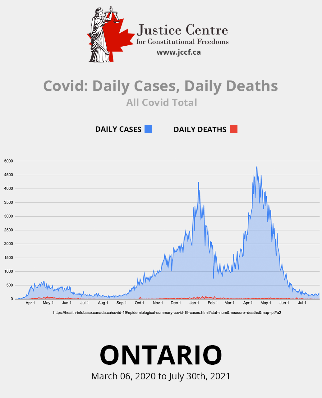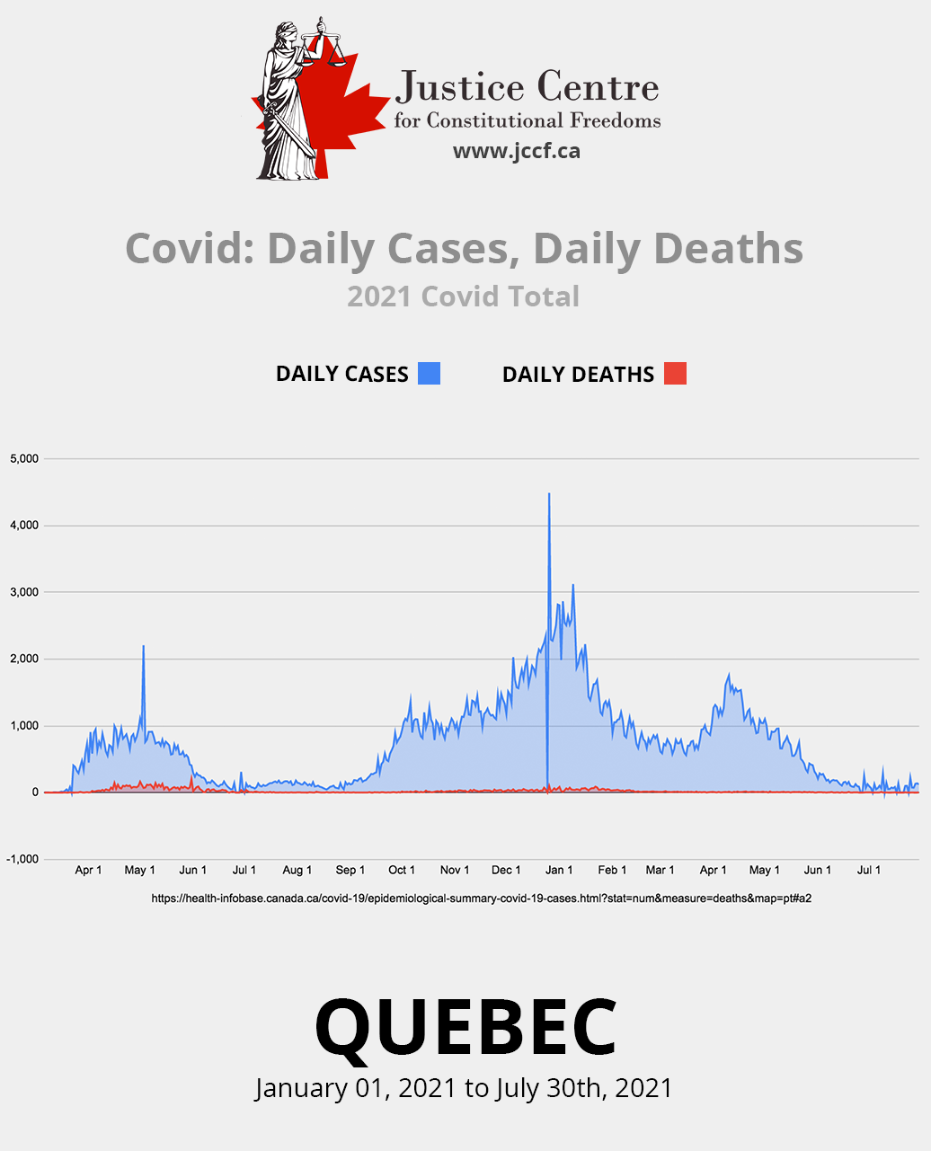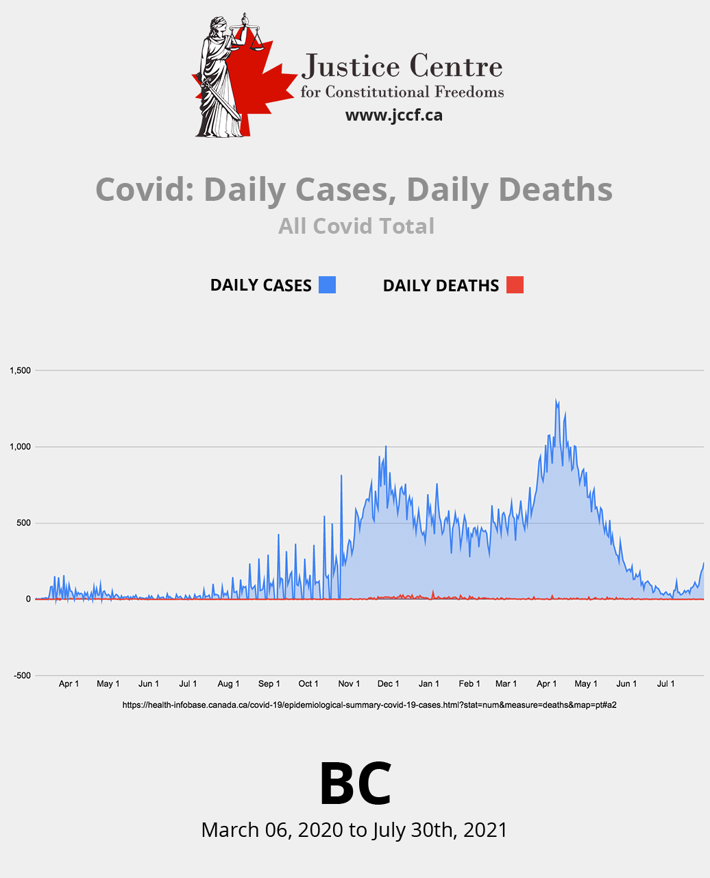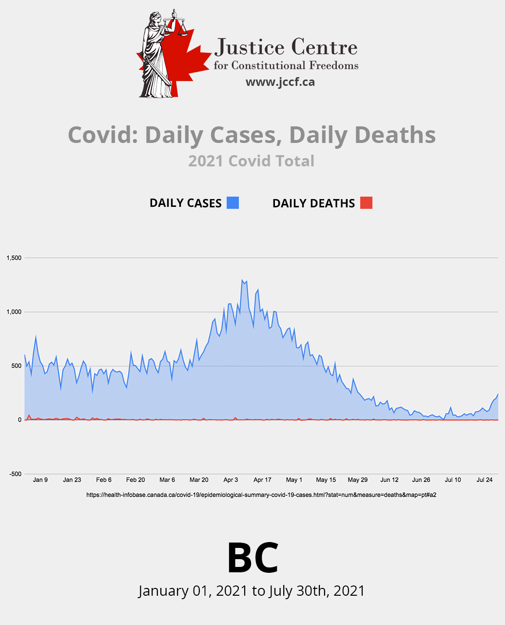 Covid Graphs by Province Full Overview, All Time Covid, 2021 Snapshot Covid: the First Year Tests, Cases & Hospitalizations News Releases - COVID-19 Apr 14th, 2020 - Saskatchewan Health Authority challenged for violating Charter freedoms April 6, 2020 - Alberta government gives itself sweeping new powers to create new laws without Legislative approval. April 4, 2020 - Justice Centre Statement on COVID-19 Related News & Articles April 14, 2020 - Ted Cruz: Social-distancing restrictions are fine — petty authoritarianism is not - New York Post APRIL 14, 2020 - Mass gathering: Cancellation of Saskatchewan drive-in church service questioned - The Canadian Press April 13, 2020 - The Coronavirus Is Exposing Little Tyrants All Over The Country - The Federalist April 7, 2020 - WHO calls for “dignified” seizure of sick family members Rebel News April 7, 2020 - Tucker Carlson: There has to be a more balanced course on coronavirus than the one we're on now - Fox News Columns & Reports - COVID-19 April 14, 2020 - Alberta's Bill 10 is an affront to the rule of law By John Carpay, The National Post April 10, 2020 - The cost of the coronavirus cure could be deadlier than the disease - By John Carpay, The Post Millenial April 7, 2020 - Analysis of Part 3 of Alberta’s Public Health Act: (Communicable Diseases and Public Health Emergencies) - By John Carpay April 5, 2020 - Canadian coronavirus prediction models must be transparent - By John Carpay, The Post Millenial Mar 31st, 2020 - Careful, crises are an ideal time for the state to grab powers: we’re already seeing it in Canada - By Justice Centre board member Bruce Pardy, The Financial Post March 20, 2020 - Justice dismantled as restrictions placed on court systems - By staff lawyer Lisa Bildy, The Post Millenial Columns & Reports - COVID-19 April 14, 2020 - Alberta's Bill 10 is an affront to the rule of law By John Carpay, The National Post April 10, 2020 - The cost of the coronavirus cure could be deadlier than the disease - By John Carpay, The Post Millenial April 7, 2020 - Analysis of Part 3 of Alberta’s Public Health Act: (Communicable Diseases and Public Health Emergencies) - By John Carpay April 5, 2020 - Canadian coronavirus prediction models must be transparent - By John Carpay, The Post Millenial Mar 31st, 2020 - Careful, crises are an ideal time for the state to grab powers: we’re already seeing it in Canada - By Justice Centre board member Bruce Pardy, The Financial Post March 20, 2020 - Justice dismantled as restrictions placed on court systems - By staff lawyer Lisa Bildy, The Post Millenial Related News & Articles April 14, 2020 - Ted Cruz: Social-distancing restrictions are fine — petty authoritarianism is not - New York Post APRIL 14, 2020 - Mass gathering: Cancellation of Saskatchewan drive-in church service questioned - The Canadian Press April 13, 2020 - The Coronavirus Is Exposing Little Tyrants All Over The Country - The Federalist April 7, 2020 - WHO calls for “dignified” seizure of sick family members Rebel News April 7, 2020 - Tucker Carlson: There has to be a more balanced course on coronavirus than the one we're on now - Fox News