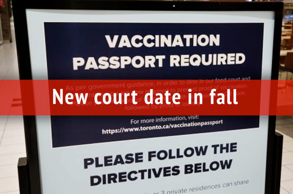 TORONTO: The Justice Centre regrets to announce that the Ontario Superior Court of Justice has postponed the constitutional challenge to the Ontario government’s now-cancelled vaccine passport mandates. The hearing has been rescheduled for November 21 and 22, 2022.