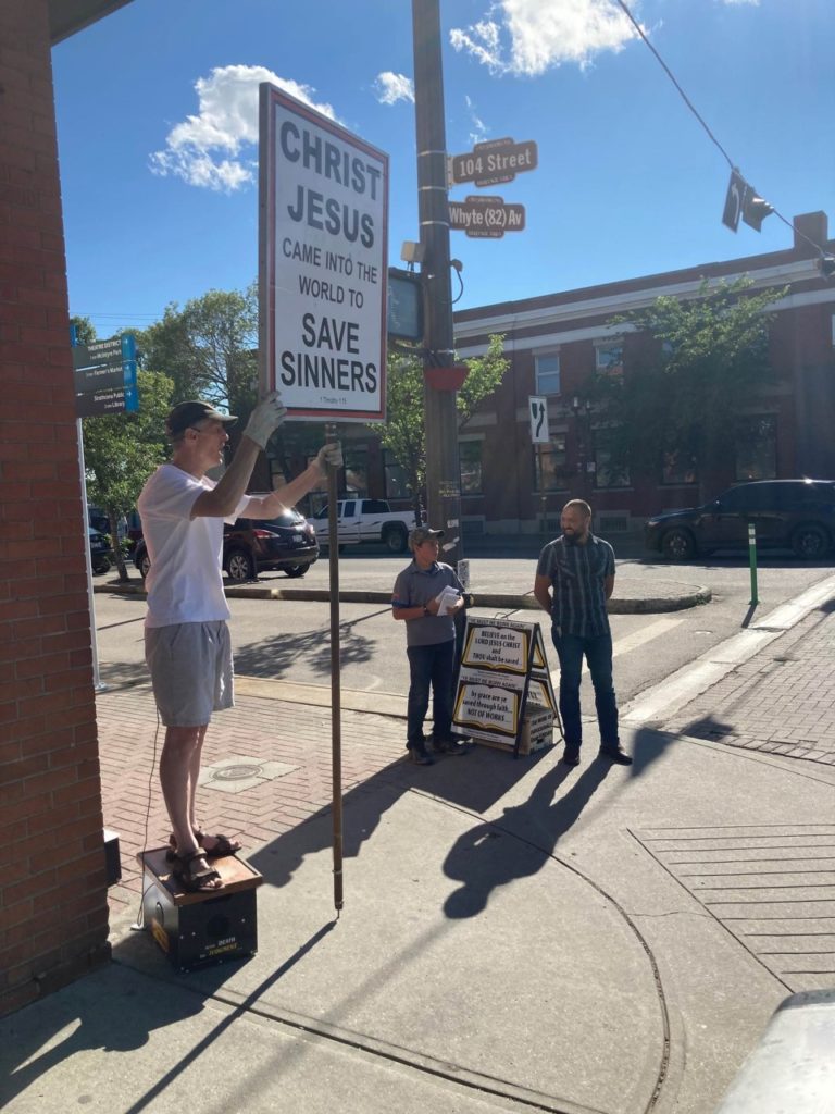 In the early evening of June 28, 2019, Dale and a colleague were preaching at the corner of Whyte and 104th when they were approached by two Edmonton Police Officers (EPS), Constable Ian Strutynski and Constable Blackwood. Constable Strutynski issued a “noise complaint ticket” to Dale after a business owner on the street complained.