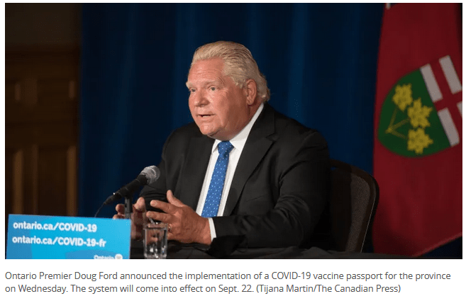 TORONTO: The Justice Centre for Constitutional Freedoms has issued a legal warning letter to the Ontario Government on behalf of four clients demanding the vaccine passport mandate be revoked immediately. The law requires Ontarians as young as 12 to provide proof of two doses of the Covid mRNA vaccination as of September 22, 2021, or be denied access to a wide range of businesses and organizations, including field trips to city facilities. The Justice Centre has notified the Province that it will file a legal action should Ontario fail to halt its unconstitutional discrimination against those who have decided against receiving the experimental vaccines.
