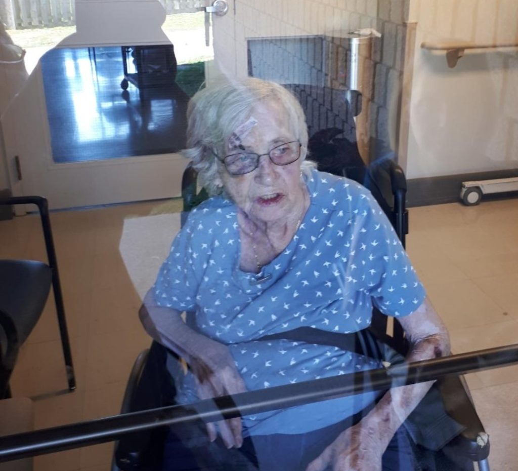 Since that time my mom has fallen at least a dozen times, several times with cuts, facial contusions and skin tears.  She goes in and out of recognizing her children and her eyes are failing. She can not properly hold a phone as her hands don’t work properly. She can not see us well through the glass window. Today my sister visited and no phone was available and she had to shout for mom to hear.